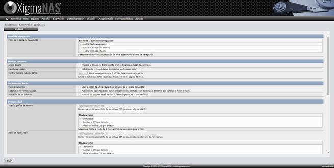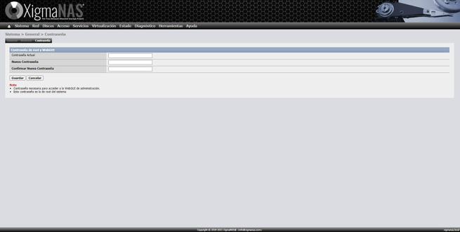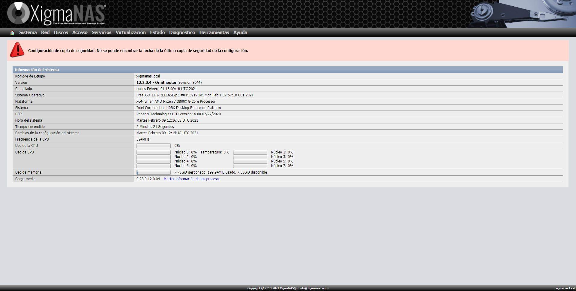 Le nom d’utilisateur pour accéder à l’administration via est «admin», et le mot de passe est «xigmanas». Une fois introduit, nous entrerons pleinement dans l’interface utilisateur graphique du système d’exploitation :