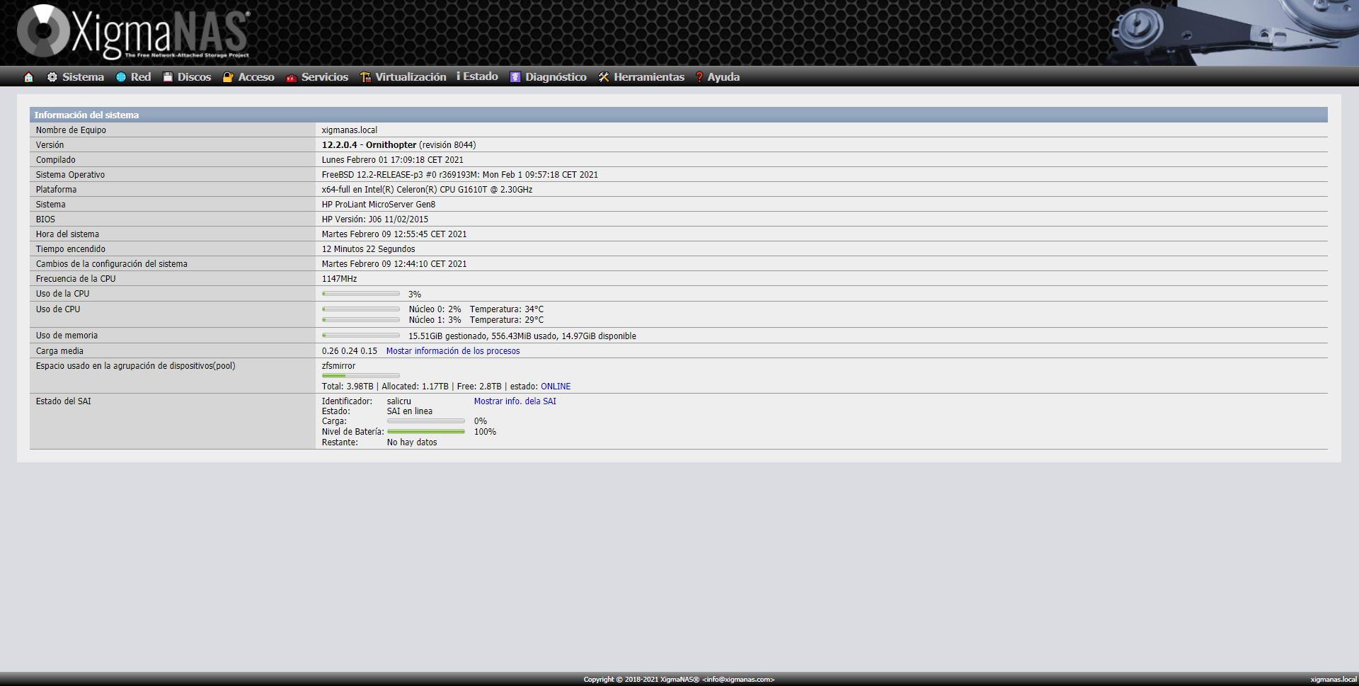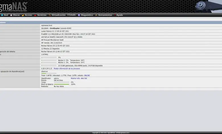 Quant au développement de ce système d’exploitation, il est plus vivant que jamais et chaque mois, ils publient une ou plusieurs mises à jour du système d’exploitation, intégrant les dernières versions du logiciel interne, et corrigeant différents bogues, failles de sécurité logicielles et bien d’autres améliorations. pour le faire très vite. Nous avons actuellement deux versions de XigmaNAS, la version XigmaNAS 12.1 est basée sur FreeBSD 12.2 et la version XigmaNAS 11.4 est basée sur la version FreeBSD 11.4, donc, selon la base à choisir, nous devons installer l’une ou l’autre. Notre recommandation est que vous utilisiez la version XigmaNAS 12.2.