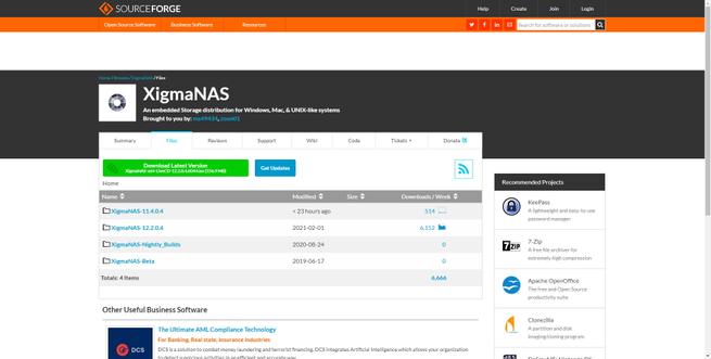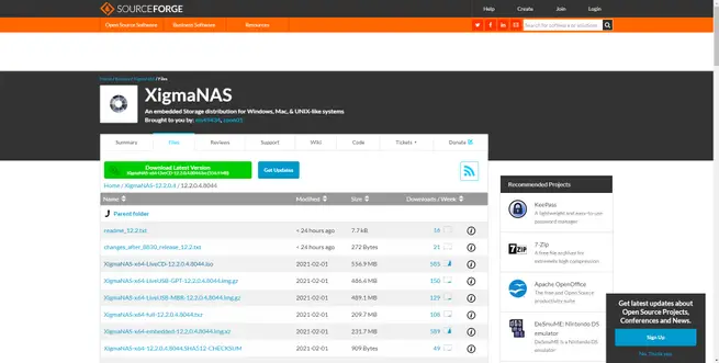 Le téléchargement et l’installation de ce système d’exploitation sont très simples, la première chose à faire est d’entrer sur le site officiel de XigmaNAS et de cliquer sur le bouton de « Télécharger ». Cela nous amènera automatiquement à Sourceforge et nous pourrons télécharger la dernière version du système d’exploitation. On peut choisir entre plusieurs types de téléchargements, l’idéal est le LiveCD ou LiveUSB version 12.2, comme vous pouvez le voir ci-dessous :