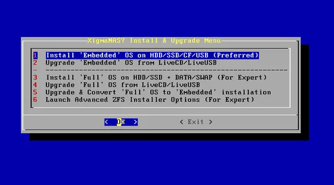 Le système d’exploitation se chargera et nous devrons appuyer sur la touche 9 pour procéder à l’installation ou à la mise à jour. Dans le menu suivant, nous pouvons choisir entre «Install Embedded» ou «Full», comme nous l’avons expliqué précédemment, pour la grande majorité des utilisateurs le premier est suffisant, mais si vous souhaitez installer des logiciels supplémentaires sur une partition de données dédiée, vous devez choisissez la version « Complet ».