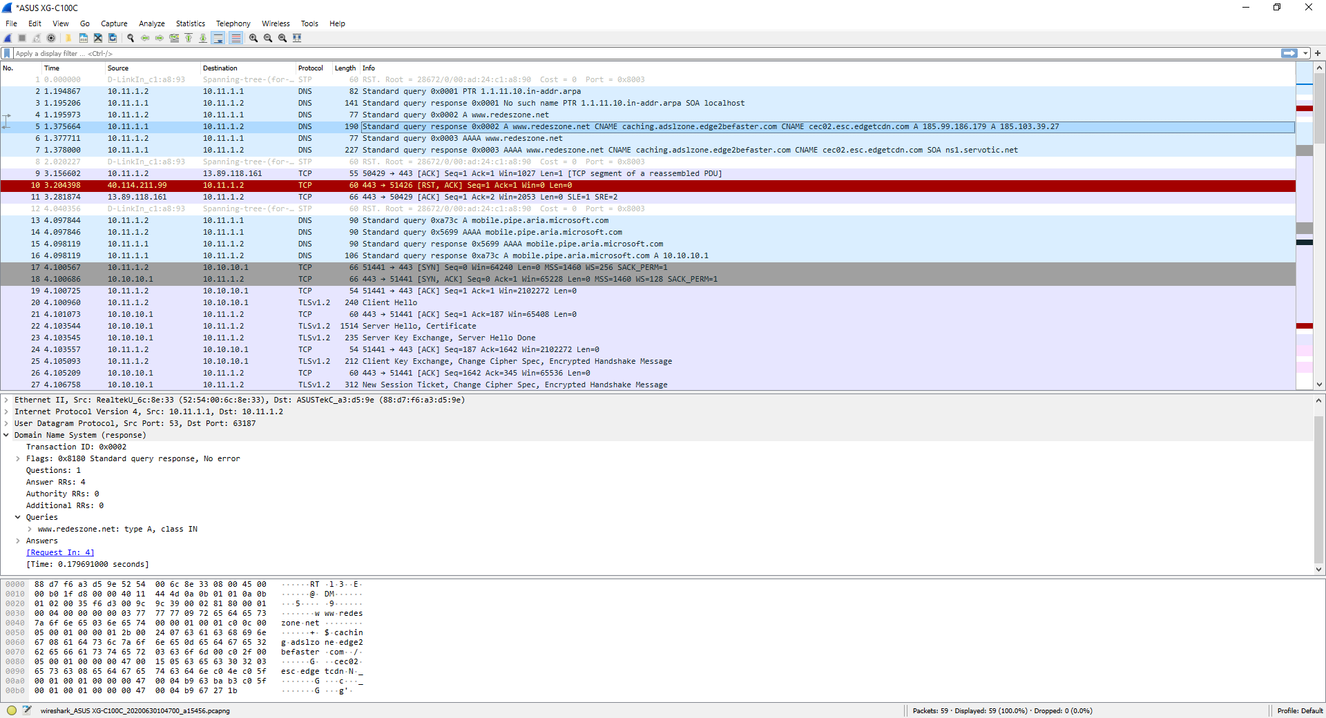 Ici, vous pouvez voir la réponse du serveur DNS à la requête DNS précédente :