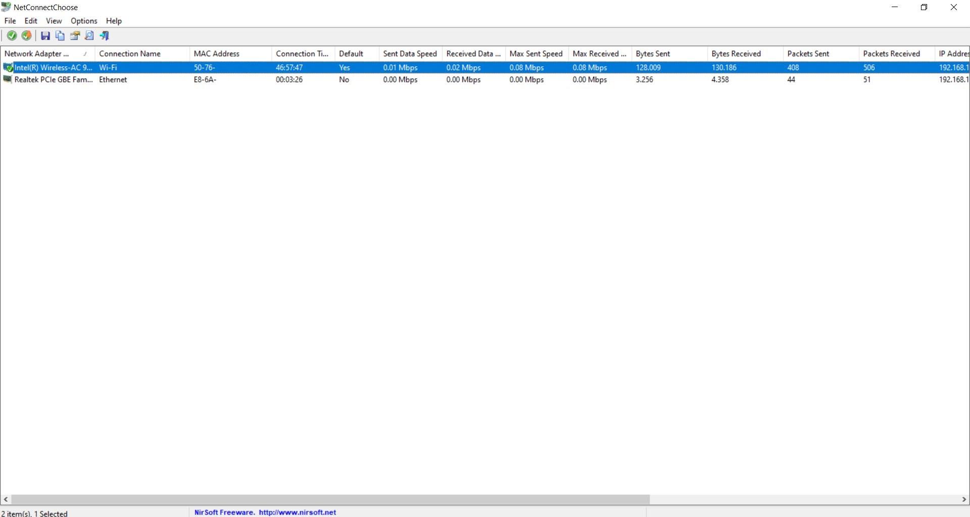 L’une des données intéressantes que nous offre NetConnectChoose est de connaître l’ adresse MAC de chacune des cartes réseau que nous avons installées sur notre ordinateur.