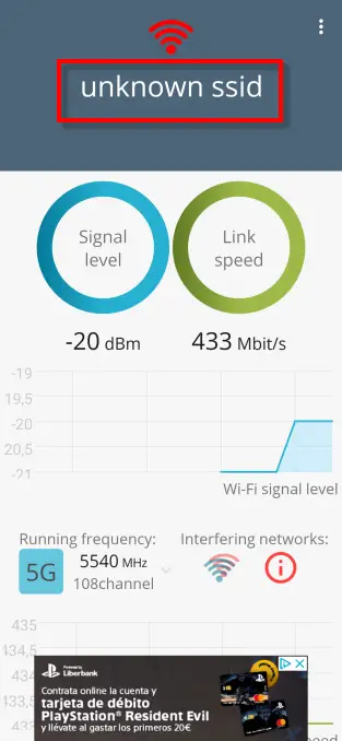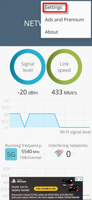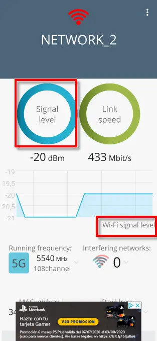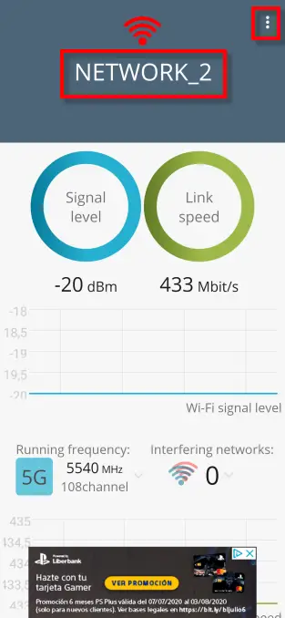 Taper sur le niveau du signal nous offrira la force du signal Wi-Fi, ainsi qu’un graphique en temps réel des fluctuations.