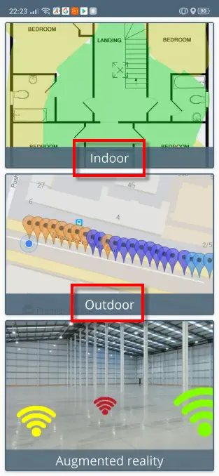 Enfin, pour finir avec WiFi Heatmap, nous avons Outdoor pour refléter dans Google Maps un plan de la situation où se trouve notre réseau.