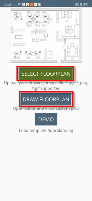 Le premier Select Floorplan nous permettrait de créer notre plan à partir d’un précédent que nous avions avant d’utiliser des fichiers jpg et d’autres types. Avec la deuxième option Draw Floorplan, vous dessinerez le vôtre en partant de zéro.