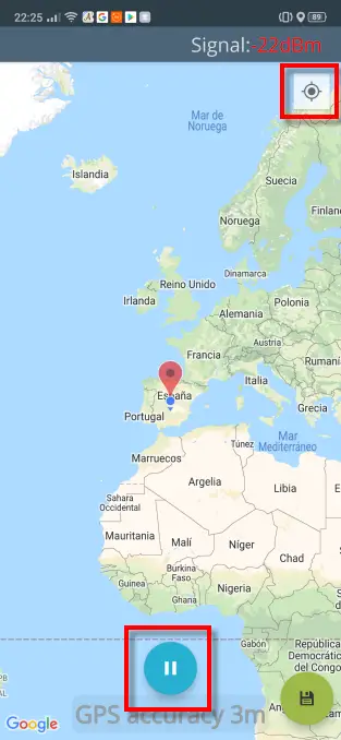 Nous donnons le bouton que j’ai indiqué ci-dessous, puis lorsque nous appuierons sur celui ci-dessus, il nous montrera où se trouvent notre réseau et les rues avoisinantes. Comme vous l’avez vu, cette application est très complète et va nous permettre de faire des cartes thermiques WiFi de manière très simple.