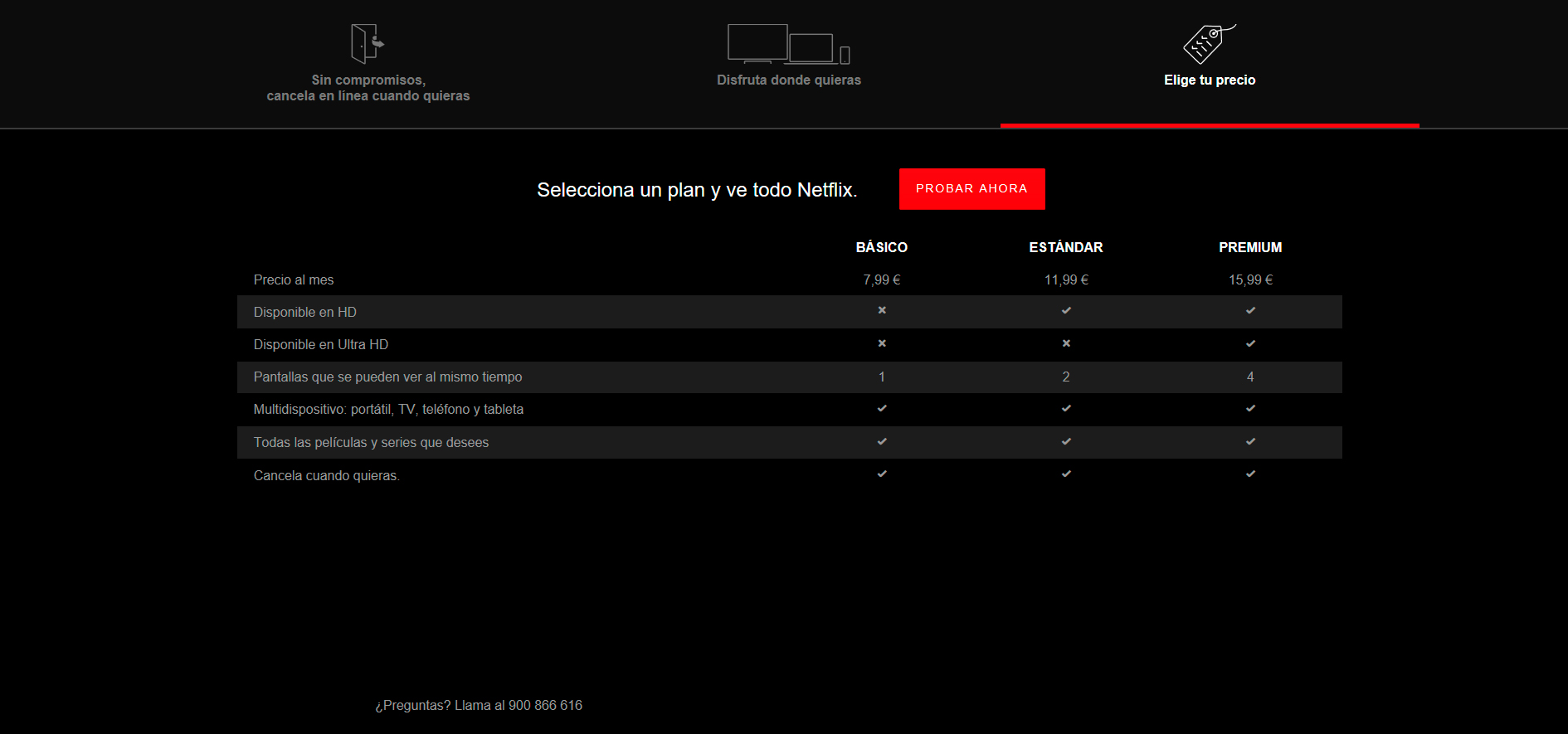 Par exemple, si nous souscrivons à un forfait de base, nous ne pourrons pas regarder Netflix en même temps que le reste des utilisateurs; Ce ne serait une option valable que si les différents utilisateurs d’un même compte ont des horaires très différents lorsqu’il s’agit de regarder des séries ou des films.