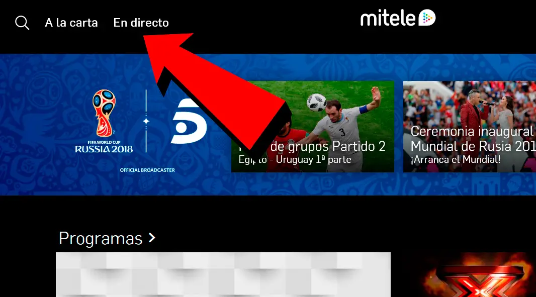 Bien que Mediaset possède tous les droits de diffusion de la Coupe du monde 2018 à la télévision via ses principales chaînes telles que Tele 5 , Cuatro et BeMad , ils proposent également les matchs via son service de streaming Internet, MiTele , une chaîne entièrement officielle compatible avec ordinateurs , SmartTV et appareils tactiles iOS et Android tels que les smartphones et les tablettes. Vous pouvez télécharger les applications officielles via les liens suivants: