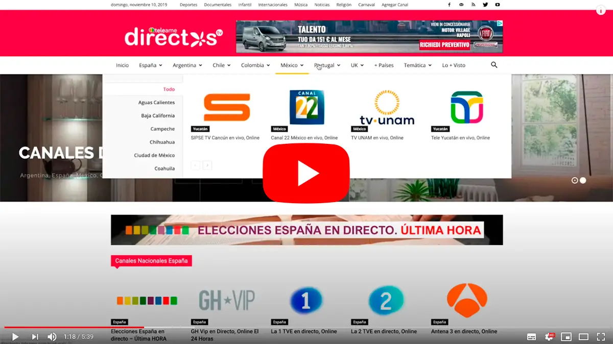 TeleDirecto.es: L’une des pages Web les plus connues au monde avec un large éventail de chaînes et de contenu à la demande, triés par catégories et par pays. L’inscription est entièrement gratuite et fonctionne sur tout type d’ordinateur ou d’appareil.