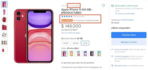 Maintenant, le fait qu’il soit en jaune ou en rouge ne veut pas dire qu’il est mauvais non plus, car cela peut être synonyme du fait qu’il n’a pas encore atteint le nombre de ventes établi pour atteindre le niveau maximum. Face à cette question, vous pouvez utiliser les commentaires des acheteurs ou cliquer sur le bouton « Voir plus d’informations sur ce vendeur ».