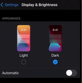 - Sélectionnez l’option » Sombre » pour activer le mode sombre sur votre appareil.