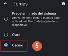 Remarque : Dans certains cas, cette partie peut apparaître en anglais sur votre appareil, la dernière option sera donc «Dark» et non «Dark», comme le montre l’image suivante :