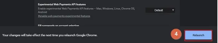 - Redémarrez le navigateur pour que les modifications prennent effet en appuyant sur » Relaunch «.