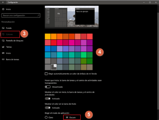 Automatiquement, la couleur de fond est maintenant noire. Changez le ton de l’accent et essayez différentes combinaisons, jusqu’à ce que vous trouviez celle que vous préférez. Utilisez l’exemple d’aperçu, situé en haut du panneau, afin de ne pas avoir à quitter chaque fois que vous changez de couleur. Pour inverser l’activation, répétez simplement le processus et, cette fois, sélectionnez l’option «Effacer».