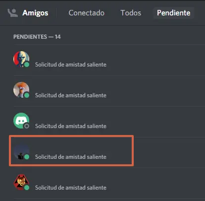 7. Vous verrez toutes les personnes que vous avez ajoutées et vous trouverez le message « Demande d’ami sortant » .
