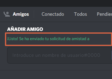 5. Vous verrez un message en vert indiquant que la demande d’ami a été envoyée à l’utilisateur que vous avez recherché.