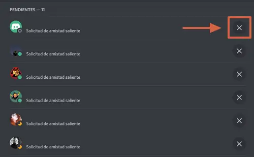 4. Trouvez la mauvaise demande d’ ami et appuyez sur le » X » à l’extrême droite de l’écran.