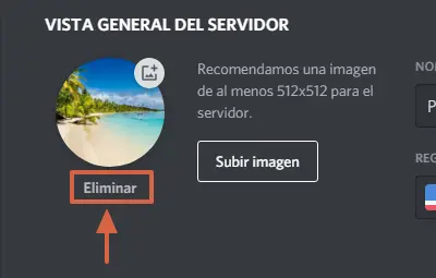 De même, si pour le moment vous ne souhaitez pas placer d’avatar sur les serveurs que vous gérez, vous pouvez supprimer la photo ou le GIF en utilisant un processus similaire au précédent. Pour ce faire, il vous suffit de faire attention à cet itinéraire :