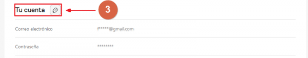 - Dans la fenêtre suivante, repérez la section « Votre compte » et cliquez sur le crayon pour modifier ou éditer vos informations.