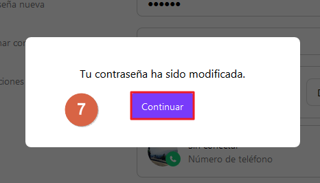 - Enfin, vous serez invité à indiquer que le nouveau mot de passe a été créé. Il vous suffit de cliquer sur «Continuer» et le processus se terminera.
