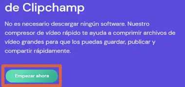 Si vous préférez compresser des fichiers sur Internet puis les partager via la version Web de WhatsApp ou les télécharger sur votre mobile pour les envoyer, c’est également possible à l’aide d’outils en ligne. Parmi les plus connus se trouveClipchamp , une multiplateforme qui, en plus de réduire le poids des vidéos, intègre d’autres fonctions telles que le rognage et le montage. Pour l’utiliser, il vous suffit de suivre les étapes expliquées ci-dessous :