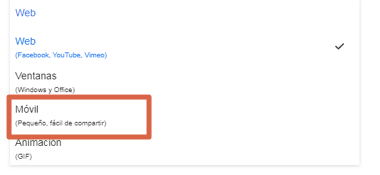 - Cliquez sur le menu déroulant » Je veux optimiser (Je veux optimiser pour) » pour sélectionner la taille de la vidéo et choisissez » l’option Mobile «.