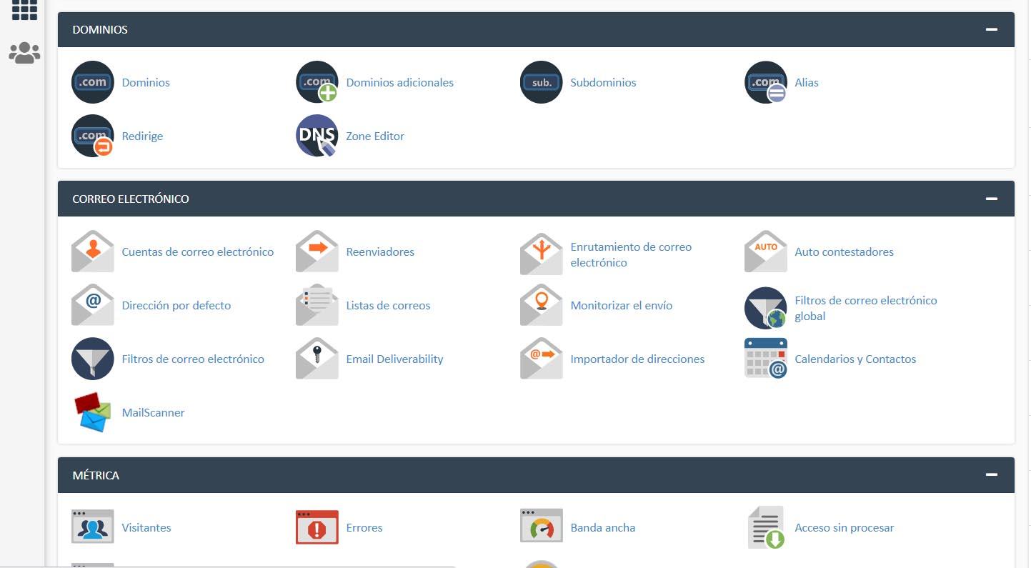 Ce que nous devons d’abord faire, c’est accéder au panneau de notre hébergement. Pour ce faire, nous nous connectons avec les données correspondantes et entrons dans cPanel. Lorsque nous sommes à l’intérieur, nous devons aller à la section Email , où nous verrons différentes options.