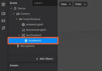 partie du filtre. Enregistrez l’image au format .PNG (sans fond). - Revenez à Spark AR Studio et suivez le chemin Add> Scene Understanding> Face Traker .