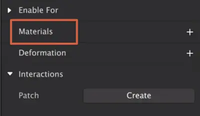- Dans le panneau latéral droit, cliquez sur l’icône «+» à côté de l’option » Matériaux «.