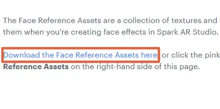 - Suivez le chemin Aide> Télécharger Face Assets ou suivezce lien pour télécharger des ressources utiles pour créer des filtres.