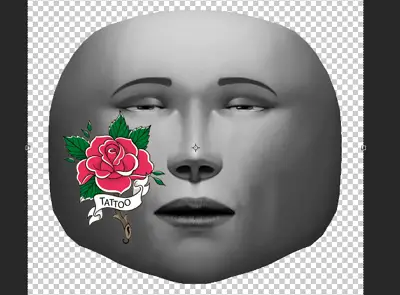 Remarque : Créez un nouveau fichier avec des mesures approximatives de 180px x 180px. Vous pouvez également ouvrir faceMasculine.png si votre filtre est basé sur un visage masculin. - Une fois le fichier ouvert, vous devrez ajouter et placer les différents éléments que vous souhaitez inclure dans votre filtre afin qu’ils correspondent aux traits du visage du maillage.