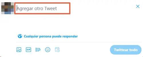 - Une petite fenêtre s’ouvrira où vous verrez le Tweet principal ainsi que ceux que vous ajoutez au fil. Écrivez dans l’ espace » Ajouter un autre Tweet «.