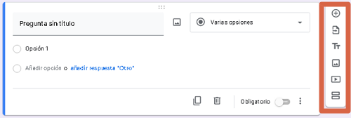 Il est important de connaître les autres fonctions d’édition de Google Forms. Dans la barre latérale, sous l’icône + pour « Ajouter une question », vous trouverez les options suivantes :