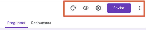 D’autre part, il y a des boutons en haut du formulaire , dont vous devez également connaître la fonction pour personnaliser et envoyer votre sondage. Ceux-ci sont expliqués ci-dessous :