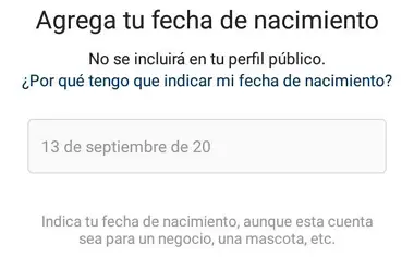 - Entrez votre date de naissance . Ces informations sont nécessaires pour des mesures de sécurité, puisque l’âge minimum pour s’inscrire sur Instagram est de 18 ans.