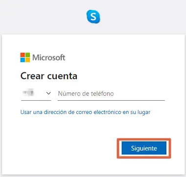 - Sélectionnez une option pour créer votre compte. Dans ce cas, le numéro de téléphone alternatif sera utilisé, puis cliquez sur » Suivant «.