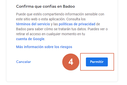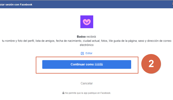 - Après vous être connecté, vous devez appuyer sur « Autoriser » dans la fenêtre suivante. Cela accorde l’autorisation nécessaire à Badoo, à votre liste de contacts dans votre e-mail.