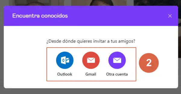 - Il vous demandera de choisir la source à partir de laquelle vous rechercherez vos contacts. Choisissez entre « Outlook », « Gmail » et « Autre compte » .