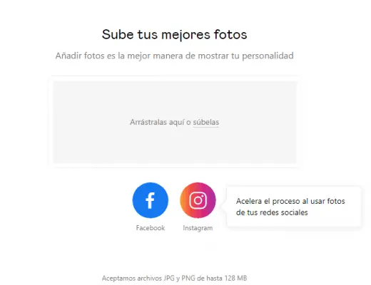 - Une fois que vous pourrez accéder à votre compte Badoo, il vous sera demandé de télécharger les images qui seront affichées sur votre profil . Pour cela, vous avez la possibilité de le faire à partir des fichiers de votre ordinateur ou d’accorder des autorisations à vos réseaux sociaux (Facebook et Instagram).