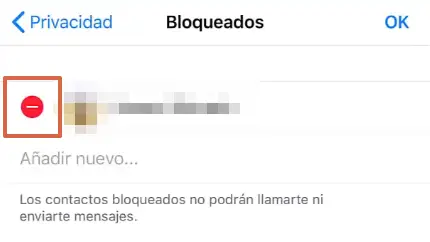 - Sélectionnez le signe » Moins (-) » en rouge pour débloquer le contact souhaité.