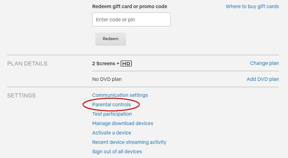 Depuis l’écran principal, cliquez sur l’icône de votre profil et sélectionnez Compte . Regardez au milieu de la page dans la section Paramètres et cliquez sur Contrôle parental . Il vous sera demandé de saisir votre mot de passe pour continuer.