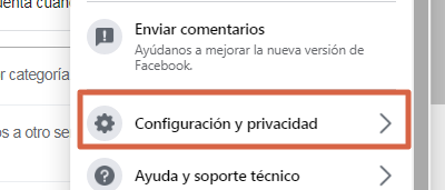 - Appuyez sur la flèche qui indique le menu déroulant Facebook et sélectionnez « Paramètres et confidentialité ».