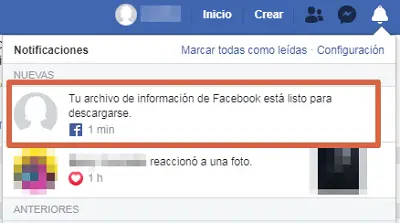 - Facebook vous enverra une notification , appuyez dessus pour accéder à l’espace où le fichier est prêt à être téléchargé.