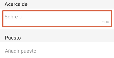 Après les avoir ajoutés, il est recommandé d’ écrire quelque chose sur vous-même dans un espace de 500 caractères maximum . Vous pouvez également ajouter votre travail, la ville dans laquelle vous habitez, votre orientation sexuelle, etc. Envisagez de ne remplir que les photos et le champ bio afin que les gens puissent se demander quels autres domaines vous faites, et ainsi un sujet de conversation plus divertissant émerge. Si vous souhaitez commencer à configurer votre profil, suivez ces petites étapes :