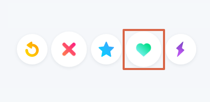 - J’aime : signifie » J’aime » et se fait en faisant glisser la photo de profil vers la droite ou en appuyant sur le coeur vert en bas.