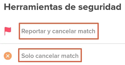 - Si vous souhaitez le signaler , cliquez sur «Signaler et annuler le match» et choisissez la cause qui vous convient le mieux.