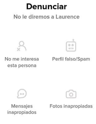Si vous avez jumelé une personne sur Tinder mais qu’elle ne répond pas quelques jours après avoir écrit, cela ressemble à un faux profil , vous lui avez parlé mais vous n’êtes pas complètement intéressé, ou vous considérez qu’il vous harcèle irrespectueux lors de la conversation , vous pouvez annuler la correspondance ( «Unmatch» ) et même la signaler dans l’application. Pour effectuer cette action, observez ces étapes :