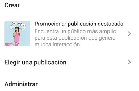 - Appuyez sur » Créer «. Gardez à l’esprit qu’Instagram vous propose comme option principale la publication qui a eu le plus d’interactions sur le réseau, mais vous pouvez la modifier en appuyant sur le bouton » Choisir une publication «.