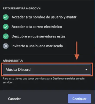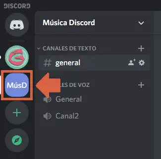 - Choisissez un serveur , le vôtre ou celui auquel vous avez été invité. Dans ce cas, il s’appellera « Discord Music ».