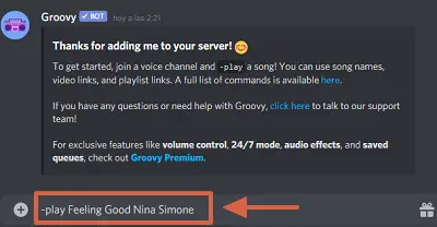 - Se connecter à Groovy et cliquez sur « Ajouter à Discord «.